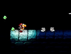 • Extended flutters are used in many levels to reach otherwise unreachable areas like in 1-1 to skip the beanstalk or in 6-4 to travel over the stone column, skipping the need for a key.