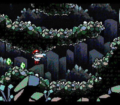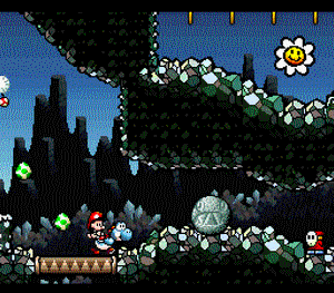 The trickiest part of this level is probably the end of the cave, which is shown in the gif below. Make sure to hold down B for as long as possible before bouncing on the shyguy, or you will not bounce high enough.